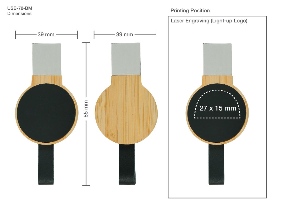 Be the first to review “USB-78-BM-Bamboo Round Light-Up USB Flash Drive with Leather Strap”